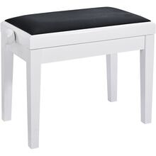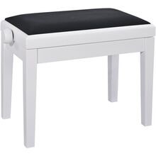 Høydejusterbar pianokrakk i massivt tre, hvit høyglans finish med svart veloursete