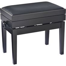 Høydejusterbar pianokrakk i massivt tre, svart høyglans finish med kunstskinnsete
