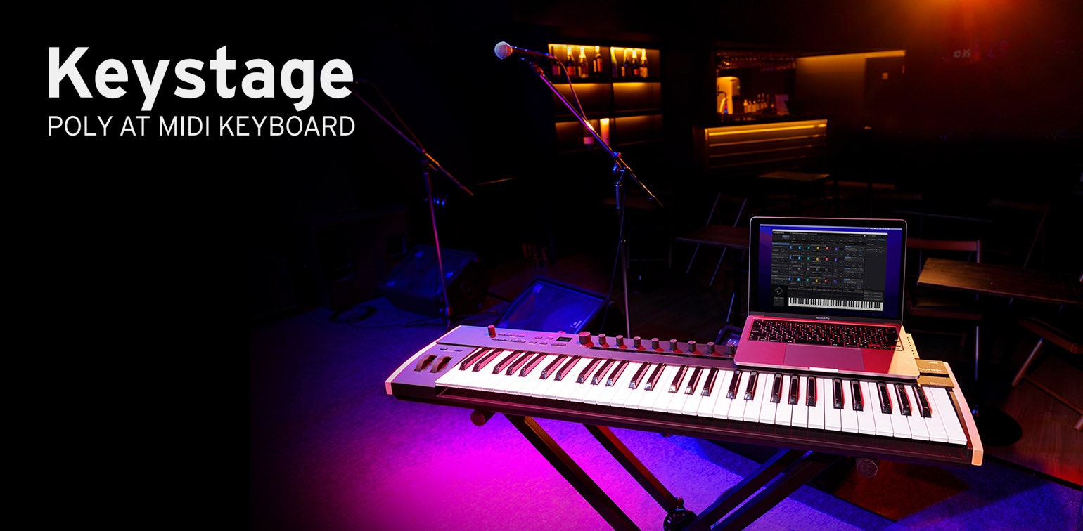 Keystage is the ultimate MIDI keyboard solution for producers and stage performers. As the first keyboard to adopt the MIDI 2.0 Property Exchange, Keystage puts unparalleled integration and control at your fingertips, taking your music-making experience to a whole new level. Featuring a new keybed design with outstanding touch response, Polyphonic / Channel Aftertouch and MPE (MIDI Polyphonic Expression) compatibility, Keystage offers hands-on control and instant visual feedback through its parameter-dedicated OLED screens. It features a powerful arpeggiator, an array of chord modes, an integrated audio interface, and official integration with Ableton Live. Whether producing in the studio or performing live, Keystage offers an unparalleled integrated and distraction-free experience to keep your musical creativity flowing uninterrupted.