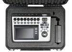Overlegen beskyttelse for TouchMix-8 eller TouchMix-16 digitalmiksere. En tilpasset utskjæring gir også plass til strømadapteren, mens den nederste delen av rommet har plass til en standard eller mini iPad.