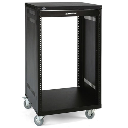 Stabil rackvogn av stål med låsbare 75mm gummihjul. Den ene siden har rackskinner med europeisk-, andre med amerikansk skruegjenger. Heldekkende sider med ventilasjonshull.