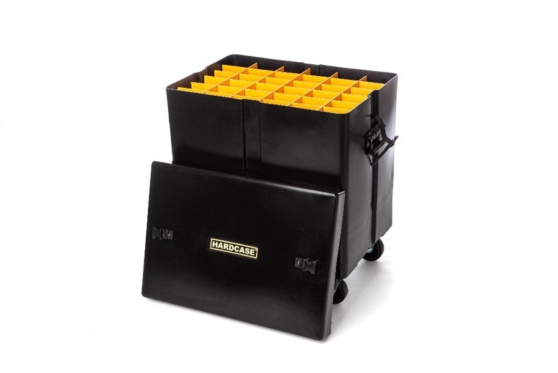 Robust hardcase på hjul med plass for 36 foldbare notestativer.