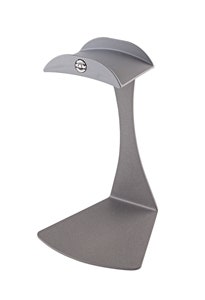 Bordsställ för hörlurar, svart, robust, tillverket i metall.