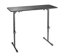 Stor sammenleggbar arrangementstabell for den profesjonelle DJ-en og mange andre bruksområder. Den 1 170 mm lange og 600 mm brede tabletop har rikelig med plass til alle slags utstyr og tilbehør. Med en tykkelse på 25 mm kan MDF-overflaten bære en belastning på opptil 30 kg. Den perfekte arbeidshevden justeres i trinn på 15 mm mellom 625 og 1 045 mm. For transport eller plassbesparende oppbevaring, foldes de to bena inn uten videre. Den robuste rørstålkonstruksjonen og de store runde nivellering-endekapslene gir den praktiske bordet svært høy stabilitet og en trygg stand.
