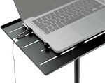 Den faste bordplaten på 479 x 312 mm har en kant for å forhindre at småting faller av, samt flere spor hvor man kan feste de fire gummihøvlede lokkene for å holde laptopen på plass. Bordplaten har også en kabelkanal slik at strømkabelen til PC-en ikke trenger å gå over kanten.