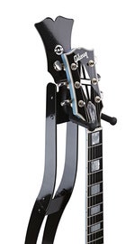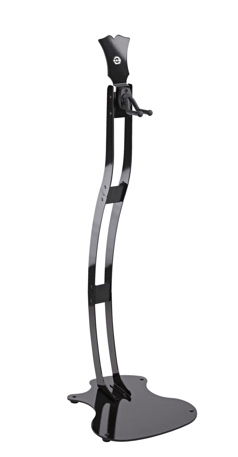 Med den attraktive Gitarstasjon, blir hver gitar perfekt vist frem - enten hjemme eller i studio. Takket være de fleksibelt justerbare, gummiBelagte monteringsklipsene og en brukbar høyde på 1120 mm, er Gitarstasjon (L) spesielt egnet for "lenger" gitarer og bassgitarer. Den solide metallkonstruksjonen imponerer med sitt slanke design og en høyglans pulverlakkering. Den buede bunnplaten med fem beskyttende filtputer sikrer en sikkert stående positur.