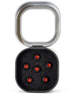 Artikkelnummer 9690002Bridge pins, Liqiud Metal (Ziconium Alloy) 6 pins per set, bone finsh with red inlays, 6-pack