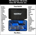 Dette settet i 11 deler er designet for å fungere på de fleste elektriske, akustiske og bassgitarer, og kommer med 6 unbrakonøkkelstørrelser, 3 størrelser pipenøkler, et spesialdesignet eikehjulverktøy og en 3/8" blade bit.
