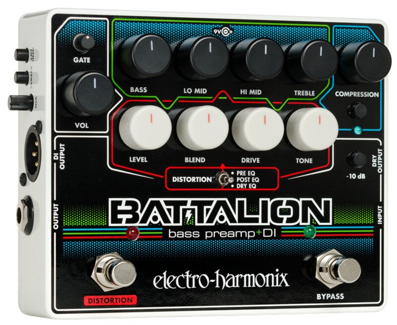 The Battalion Bass Preamp and DI er en kompakt, fleksibel pedal som leverer kraftige toneformende egenskaper i en robust pedalboard-vennlig pakke. The Battalion er fullspekket med funksjoner som vil appellere til tonebevisste bassister, og inkluderer en fire-bånds equalizer, fullt utstyrt MOSFET-distorsjon med tre signalveivals, en kompressor, en støygrense og omfattende I/O.