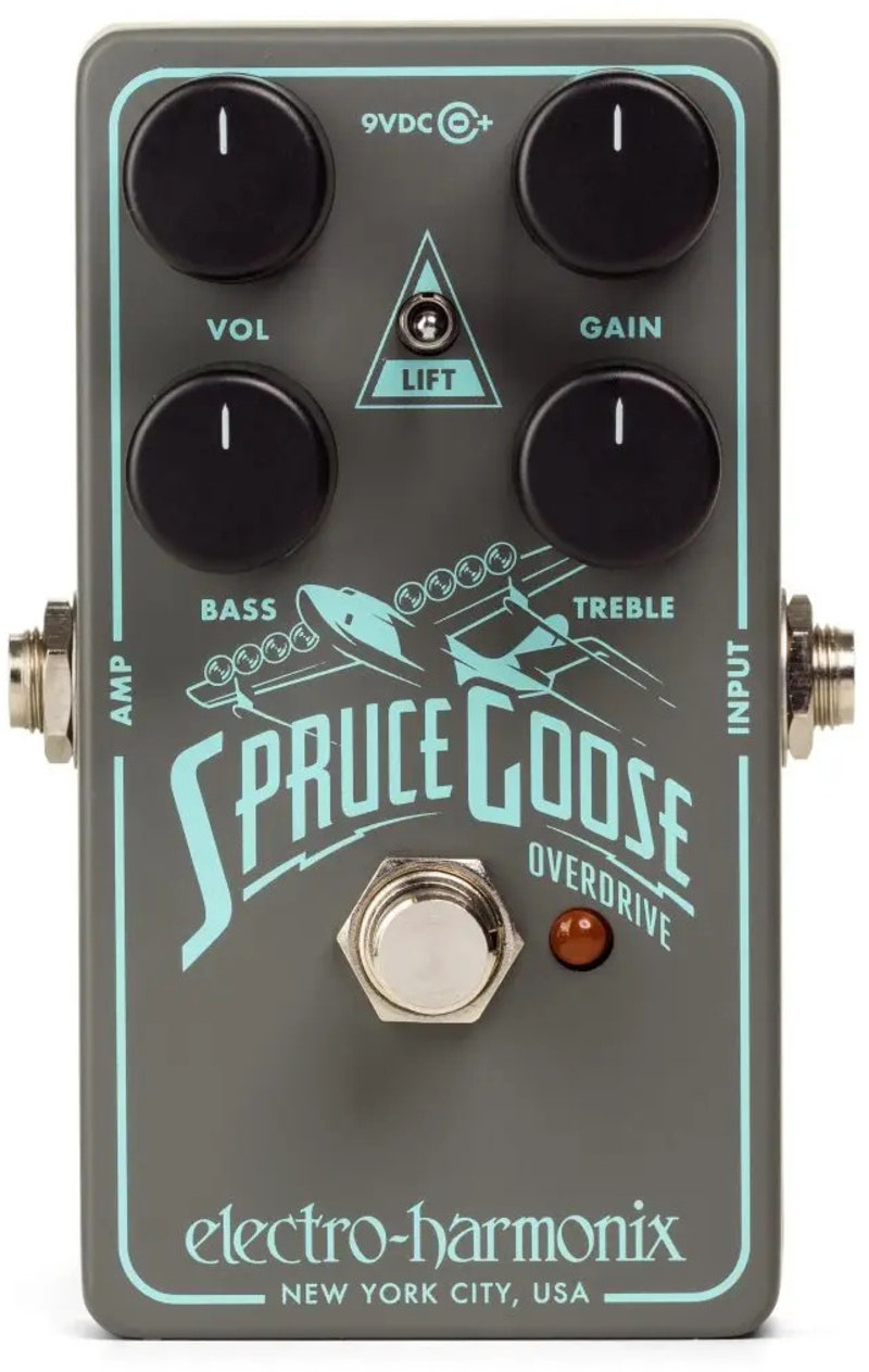 Grunnlaget til Spruce Groose består av en overdrive-krets kjent for sin naturlige måte å overstyre signalet på og responsen som en vanlig forsterker. For å utvide mulighetene er det også LIFT-funksjonen som påvirker inngangssignalet i tre moduser og som fungerer som en boost av inngangssignalet som gjør at kretsen drives hardere og dermed produserer en mer komprimert og tettere overdrive uten å ofre dynamikk eller åpenhet. GAIN- og VOL-kontrollene justerer mengden forvrengning og volum som kommer ut av pedalen. EQ-delen består av en diskantkontroll for å redusere diskant og en aktiv basskontroll hvor du kan velge om du vil kutte eller heve frekvensene i de lave registrene, perfekt når du vil legge body til gitarer med single coil mikrofoner eller hvis du ønsker å stramme opp det lave registeret på instrumenter utstyrt med humbuckere.