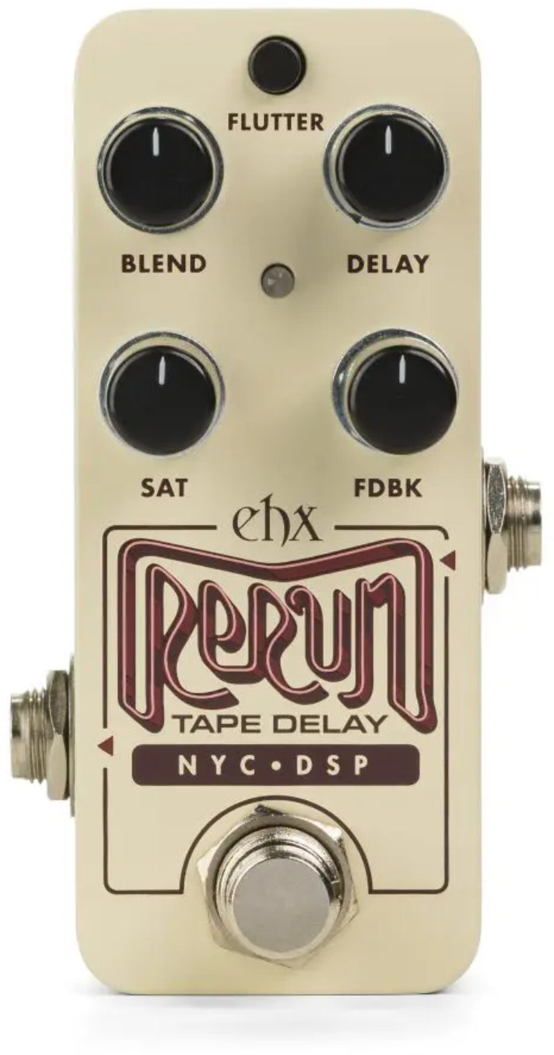 Gamle båndekko er kjent for sin varme, myke tone, en tone skapt av forforsterkeren og båndet som genererte ekkoet. Disse egenskapene fra forforsterkeren og båndet har blitt gjenskapt i Pico Rerun Tape Delay. Basert på forsinkelsesalgoritmen som finnes i Electro Harmonix Canyon Delay, er Rerun Tape Delay den lille pedalen med den store lyden.