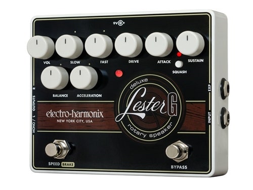 Den ultimate roterende høyttalereimulatoren pakket med funksjoner som en spesialdesignet komprimeringskrets for å forsterke effekten av den roterende høyttaleren på gitar. Lester G’s omfattende kontroll inkluderer fullt justerbar tube-style overdrive, Fast og Slow moduser samt en Accelerasjon-kontakt for å fininnstille hastigheten på overgangen mellom effektene. Lyden av det gigantiske tre- skapet vil nå få plass på en pedalbord!