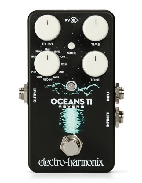 Electro-Harmonix Oceans 11 er en kompakt og ekstremt vällydende reverbpedal som inneholder klassiske og mer eksotiske reverb pluss en oppsjon av andre nyttige effekter. Pedalen inneholder elleve ulike effekttyper og MODE-switchen tilbyr ulike variasjoner for flere av effektene. Som vanlig når det gjelder Electro-Harmonix effekter møter her innovasjon og kvalitet i en ytterst prisgunstig og brukervennlig pedal.