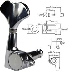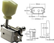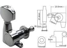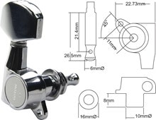 Låse Tuner-sett for elektrisk gitar. 3 venstre, 3 høyre. Nikkel.