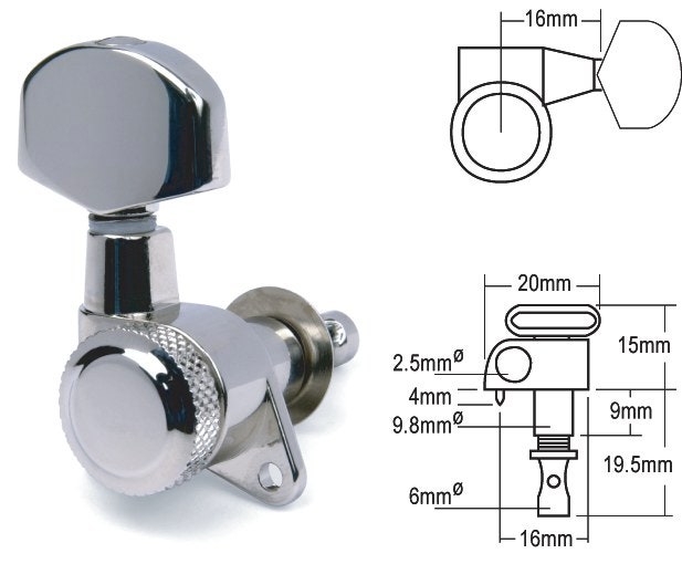 3 venstre, 3 høyre med låsing. Forkrommet.