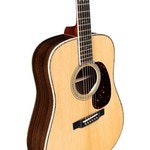 Instrumentet er bygget med et heltre granlokk, behandlet med Martins Vintage Tone System® (VTS), som aldrer treverket og gjenskaper den modne, varme lyden av en gammel gitar, helt fra første akkord. Sider og bunn er laget av indisk palisander for en rik lyd, mens grantoppen og avstivning i Adirondack-gran med VTS- og GE-scalloped-form gir respons og sustain i det øvre registeret. De utvendige egenskapene matcher tonen, flammet europeisk lønn som kanter på kropp, gripebrettet og hodestokk, abalone-innlegg rundt toppen og rosetten, snøfnugg-innlegg i abalone og perlemor langs gripebrettet og på hodet. Den gullbelagte åpne mekanikken fullfører det eksklusive uttrykket. D-45 Modern Deluxe har en asymmetrisk Vintage Deluxe halsprofil, en bro som hviler på et lag med karbonfiber for mer volum og sustain, som er ytterligere forbedret med Liquidmetal strengepinner.