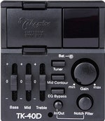 Innebygd mikrofon, preamp, 3-bånds EQ og kromatisk tuner.
