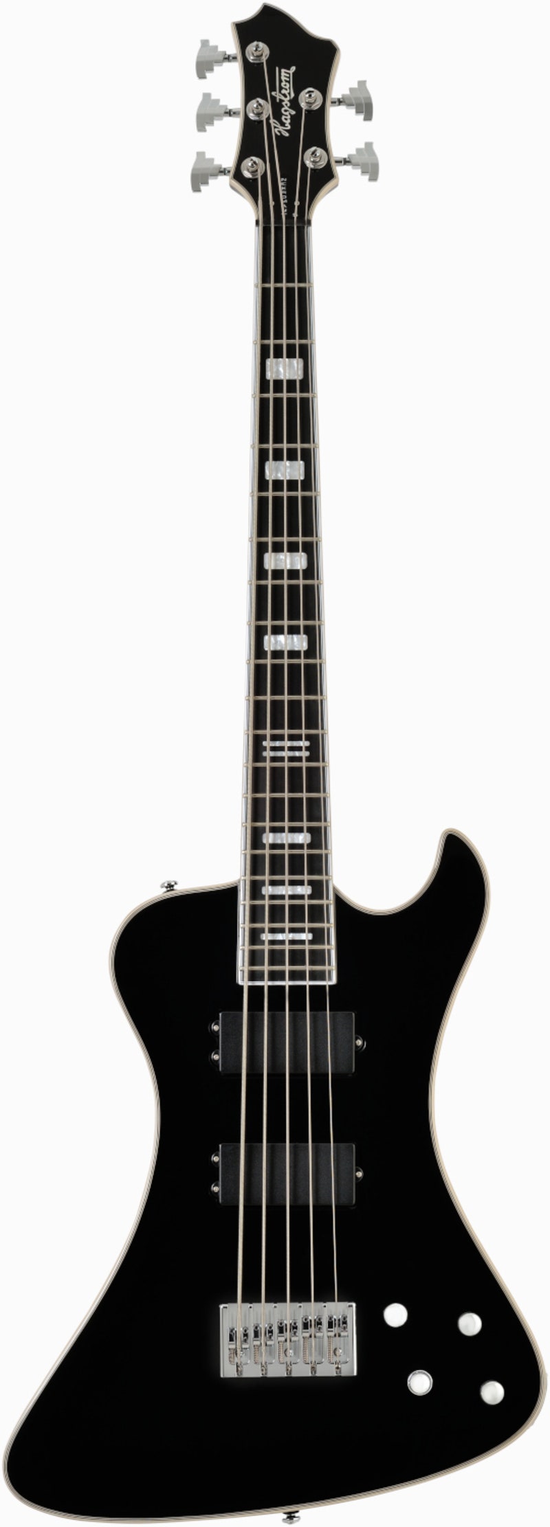 Artikkelnummer 3025909El-bass, 5-strengs, mahogni kropp og hals, Resinator gripebrett, Hagström Soap-Bar humbuckers, aktiv/passiv preamp