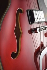 Alvar har også en hul kropp av laminert lønn, buet lokk og hals av lønn med gripebrett i Resinator Wood men med en slankere og mindre kropp.