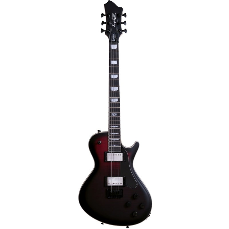 The Hagstrom Krona is a bold, uncompromising electric guitar designed for players who demand raw aggression, articulation, and professional tonal control. Its offset single-cut body, sculpted German carve, and premium tonewoods give the Krona both its striking visual identity and its commanding sonic foundation. A mahogany body paired with a Canadian maple top and flame maple veneer delivers warmth, power, and long-lasting sustain, while the mortise-and-tenon set neck construction ensures stability, resonance, and a responsive playing feel.