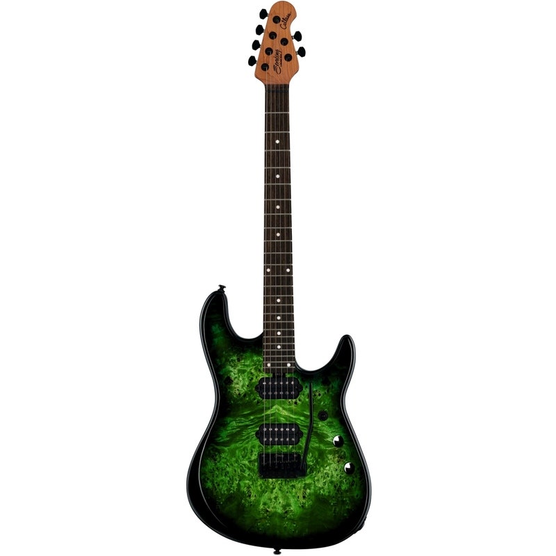 Gitaren er utstyrt med spesialdesignede Sterling by Music Man JR humbuckere som leverer høy output og bred dynamikk. Elektronikken inkluderer push‑push volumboost med opptil 12 dB forsterkning samt push‑push coil‑split på tonekontrollen, noe som gir et bredt register fra artikulerte rene lyder til kraftige high‑gain‑toner. Låsbar mekanikk, dual action truss rod samt fempunkts halsinnfesting sikrer stabilitet for både scene og studio.