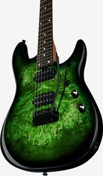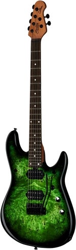 Artikkelnummer 1572145Elgitar, 7‑strengs, kropp i or, poppel burl‑topp, hals i ristet lønn, gripebrett i rosentre, SBMM JR humbuckere, 12 dB volum boost, låsbar mekanikk, tremolo.