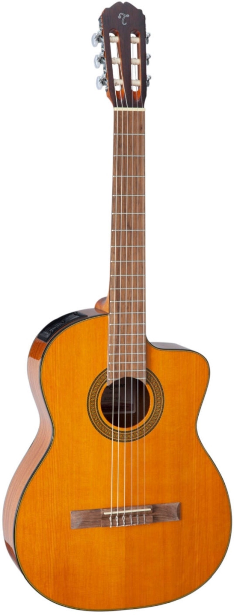 Artikkelnummer 4212310Nylonsträngad akustisk gitarr med inbyggd mick, cutaway og lås i solid ceder.