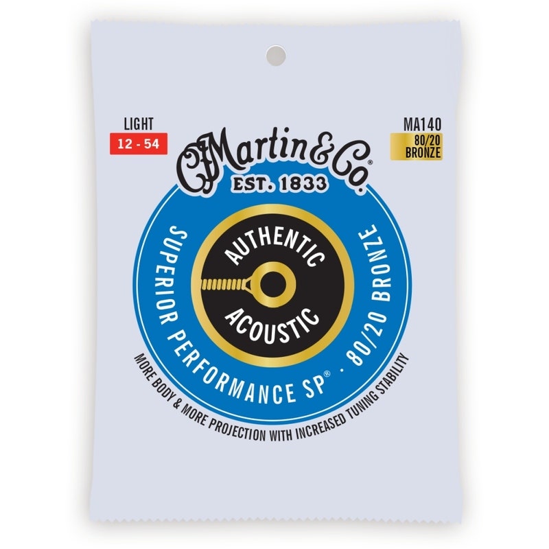 Martin Guitar Authentic Acoustic Superior Performance 80/20 Bronze - Light MA140