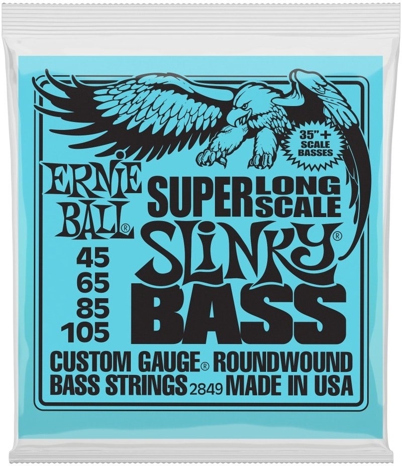 Et sett med ekstra lange strenger for basser med lang skala . Den totale lengden på hver streng er 50" og er avsmalnet ved 38 1/2".