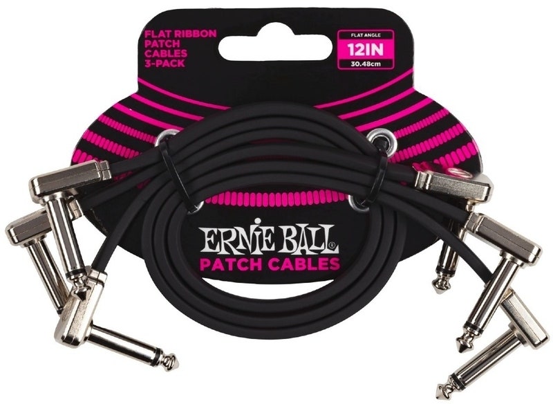 3-pack 30 cm Ernie Ball Flat Angle Patch Cable - Sort flat kabel med flate vinklede kontakter
