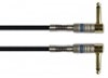 Sort patchkabel med plugger og belastningsbeskyttelse i metall. Vinklede kontakter.