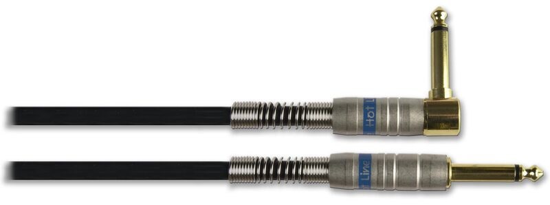 Sort kabel med kontakter og avlastningsbeskyttelse i metall. Rett/vinklet kontakt.