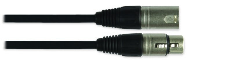 Sort kabel med kontakter i metall og avlastningsbeskyttelse i myk plast. 6 m.