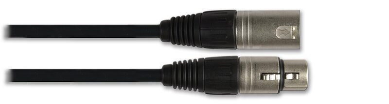 Sort kabel med kontakter i metall og avlastningsbeskyttelse i myk plast. 9 m.