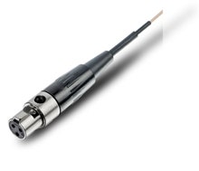Earset-mikrofon av kondensatormodell med miniatyr mikrofonkapsel og P3-kontakt på kabelen.