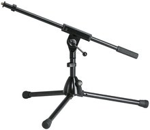 Lågt mikrofonstativ med 2-delad bom og kraftige ben. Høyde: 280 mm. Svart.