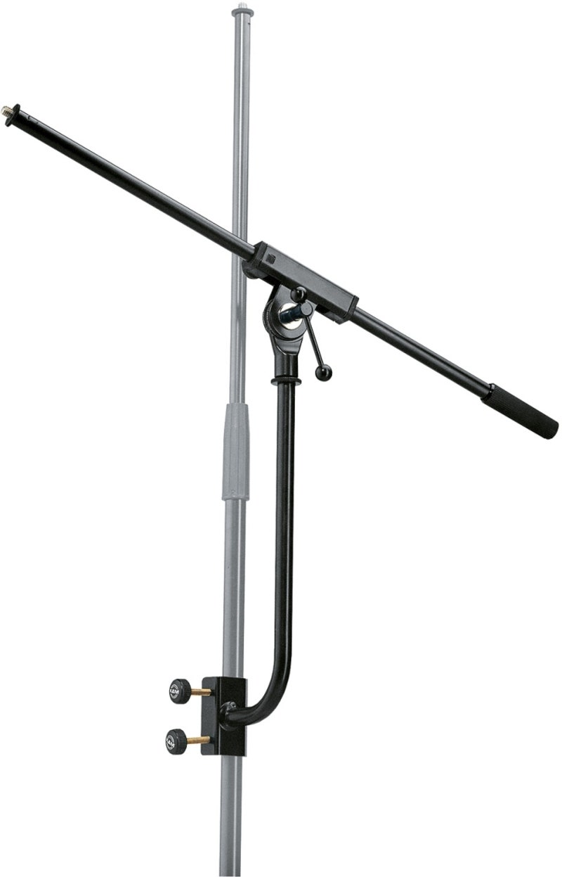 Mikrofonarm med bom og feste for stativ med opp til 22 mm diameter. Sort.