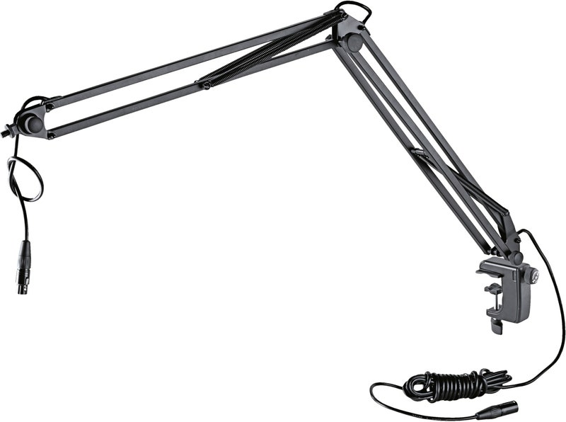 Med tvingefeste for bordmontering. Inklusiv 5 m mikrofonkabel med XLR-plugg. Maks lastekapasitet: 0,8 kg.