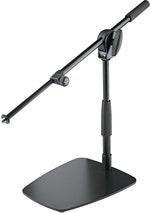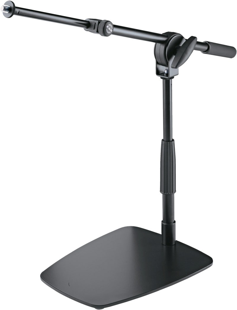 Lågt mikrofonstativ, platt fot, teleskopbom, svart.