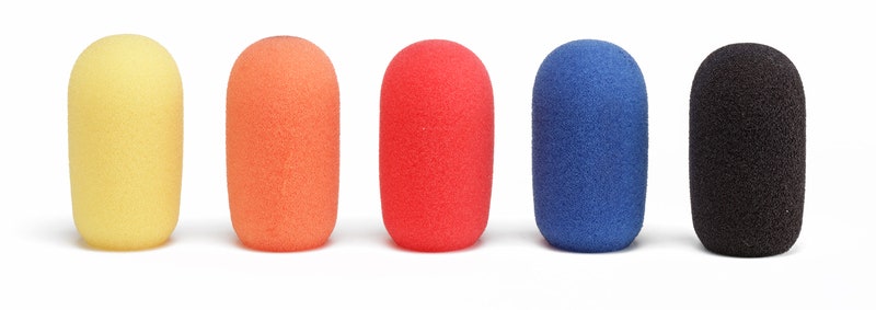 5-pack puffskydd for aerobicsmikrofoner. Passer mange populære headsetmikrofoner (inkludert Samson Qe, Qv)