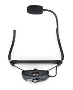 The AirLine 99m AH9 Fitness Headset system includes a Qe headset microphone, specifically designed for fitness instructors and high-energy performers. The Qe features a lightweight, double ear headset design with an adjustable/removable strap for a more secure fit. At the end of an adjustable stainless steel metal gooseneck sits the condenser microphone, whose water/sweat-resistant capsule prevents corrosion from the prolonged exposure to moisture that is to be expected in a fitness setting. And with a bidirectional pickup pattern, the Qe's condenser capsule takes hold of stunning audio while reducing background noise, minimizing feedback problems and effectively rejecting signals not originating directly in front of the mic.