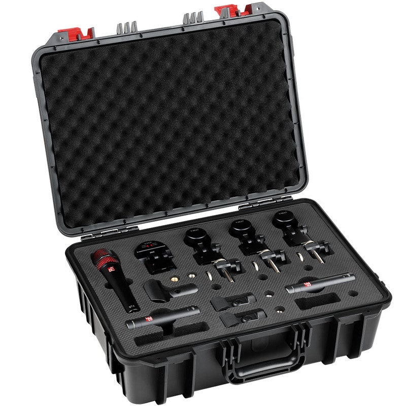 Trommemikrofoner, sett med 7 mikrofoner, holdere og hardcase, sort