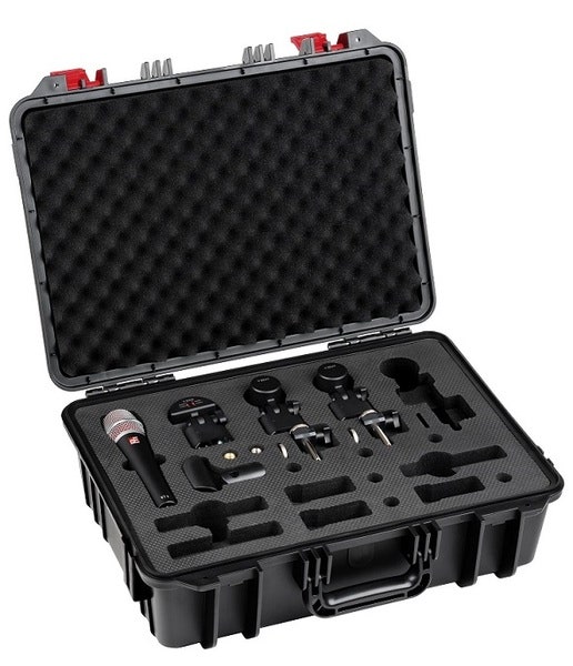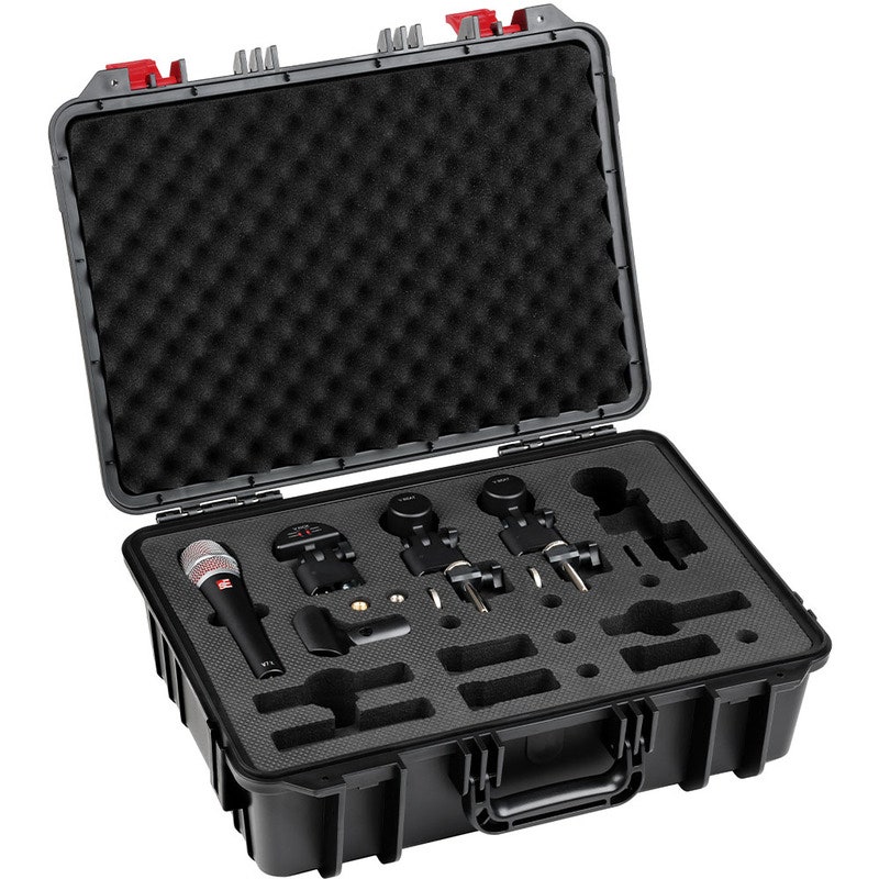 V PACK VENUE kommer komplett med en V7 X, V KICK, to V BEATS og V CLAMPS, alle plassert i romsligheten til V CASE hvor det er lagringsplass for tre mikrofoner til.