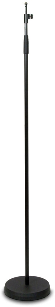 Rakt mikrofonstativ, rund fot, tredelat rør, svart.