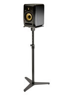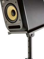 Den moderne studio monitorstøtten med en tiltsbar plate og en metalltripodbase gir stabilitet og funksjonalitet. De tre filtbelagte støttene sørger for støydemping.