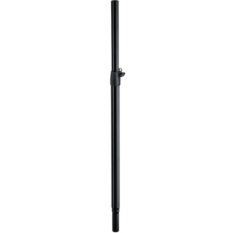 Høyttalerstativ som skal plasseres mellom topp og bass, såkalt dansebandstang, justerbar høyde, stål, sort