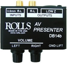 Splitter 2 stk stereokanaler til individuelle volumkontroller for venstre og høyre og går dels til et RCA-par...
