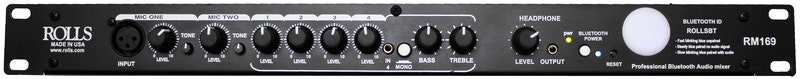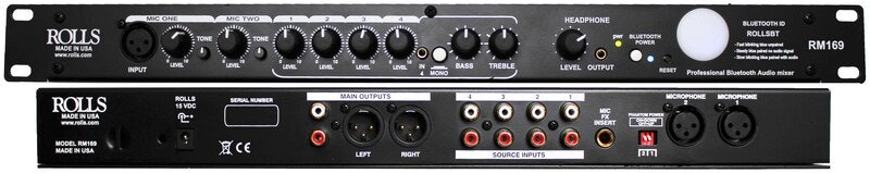 RM169 er en sekskanals profesjonell lydmikser med Bluetooth-inngang. To mikrofoninnganger, og fire stereo linje RCA-innganger. RM169 er ideell for enhver installasjon der plass er en vurdering, uten å gå på kompromiss med lydkvaliteten. Bluetooth-inngangen har utvidet rekkevidde og eksepsjonell lydkvalitet. RCA- og XLR-balanserte utgangskontakter gjør RM169 perfekt for alle bruksområder.