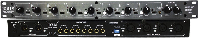 RM85 er en 8-kanals to-soner mixer. Kanaler 1-4 kan håndtere XLR mikrofon- eller XLR line-nivå inn- innganger. Kanaler 5-8 er 1/4"-innganger. Alle 8 kanaler kan sendes til de to XLR-utgangene i tre konfigurasjoner; A, B eller begge A+B. De separate A- og B-utgangene er XLR, og hvilken som helst kan velges som Line- eller Mikrofonnivå utgang. Kanal 8 har også en stereoinngang på 3.5mm (1/8") på forsiden av RM85.