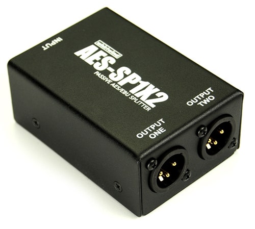 AES/EBU SPLITTER 1x2 er en passiv enhet som levererer to identiske AES/EBU-signaler fra èn kilde. Designet har en dobbel sekundær transformator på inngangen og en separat isoleringstransformator for hver utgang. Med sin tre-transformatorkrets klarer AES-SP1X2 å opprettholde en utmerket dataintegritet og en effektiv isolering mellom utgangene. Du kan med god samvittighet bruke lengre kabler og samtidig få mindre feil ved signalet.